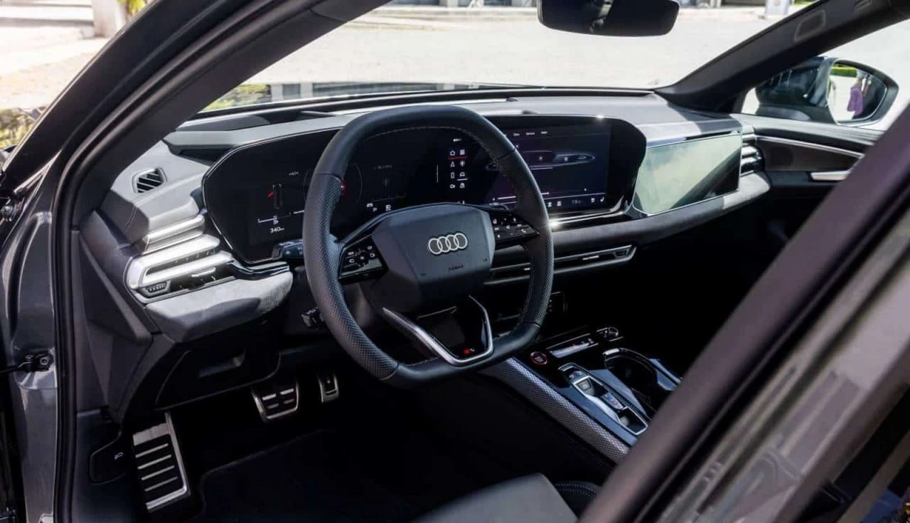 O interior luxuoso e tecnológico, repleto de inovações como o MMI Panoramic Display e acabamentos em fibra de carbono.