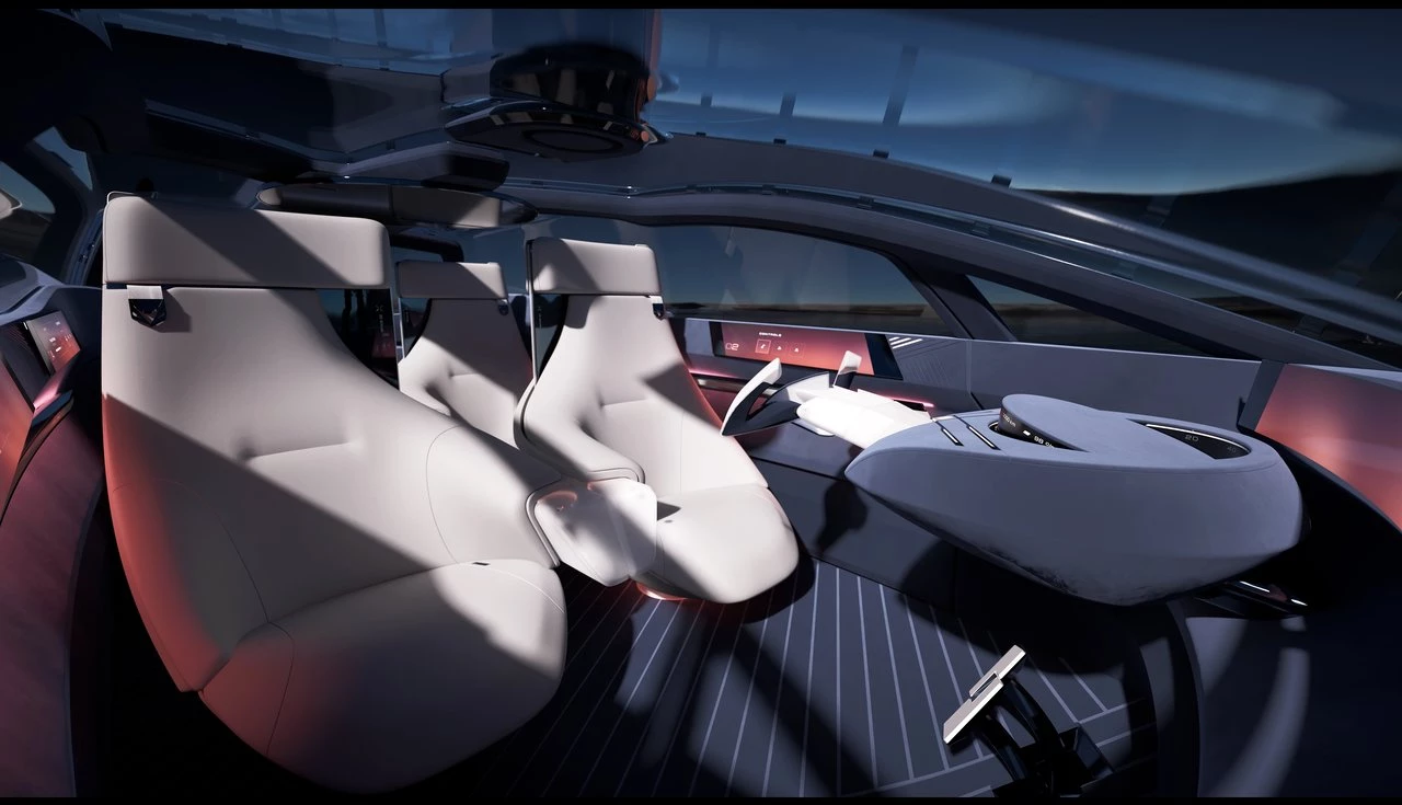 Os assentos em formato de cápsula são revestidos em couro vegano e tecidos reciclados, alinhando-se com a sustentabilidade sem abrir mão do conforto. Cada banco possui ajuste ergonômico automático, com sensores que monitoram a postura do passageiro e regulam suporte lombar, temperatura e massagem.