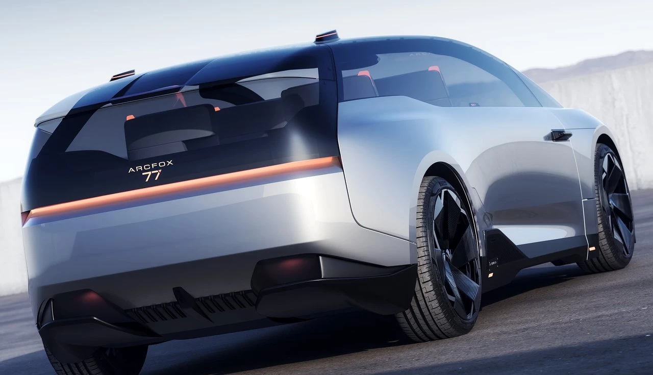 Um dos grandes destaques do Arcfox 77 Concept é sua eficiência aerodinâmica, crucial para um veículo elétrico de alto desempenho. O formato alongado, o teto baixo e a ausência de maçanetas tradicionais (substituídas por sensores touch) contribuem para um coeficiente de arrasto extremamente baixo.