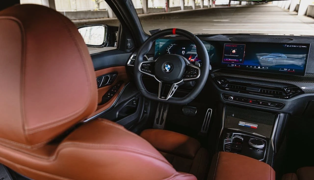 Rodas M de 19 polegadas bi-color, escape M Performance com som mais encorpado, spoiler traseiro em carbono com emblema “50 JAHRE”, freios M Sport grandes, Head-Up Display, câmeras 360º e muito mais.