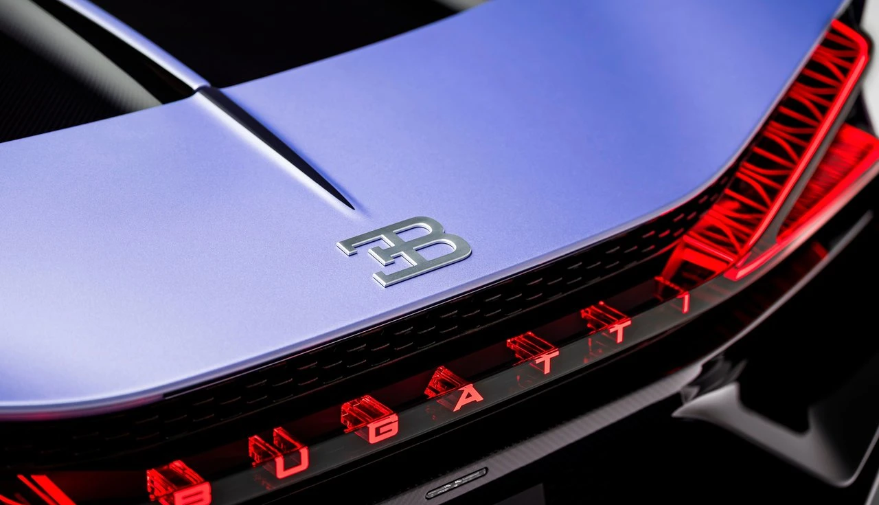 A cor foi o ponto de partida de tudo. A Bugatti desenvolveu um tom exclusivo chamado “Lavender”, testando dezenas de amostras antes de chegar a uma tinta que muda entre violeta quente e frio dependendo da luz.