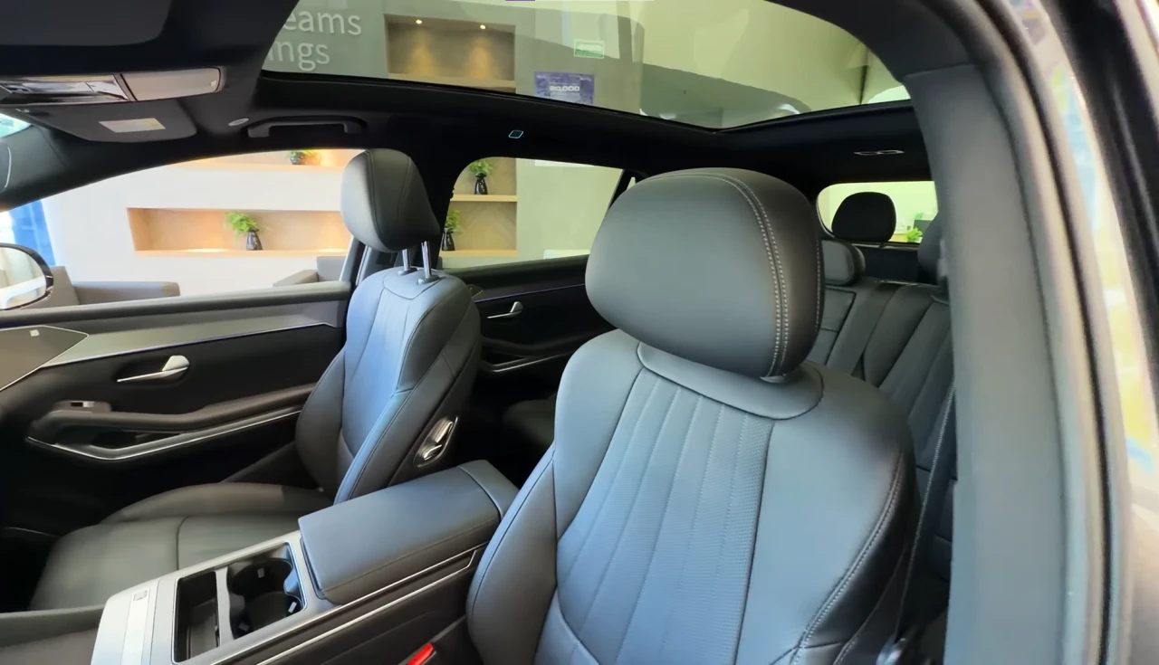 Os bancos dianteiros têm ajuste elétrico, aquecimento, ventilação e massagem. A segunda fileira também conta com aquecimento e massagem. Tem até mini geladeira embutida.
