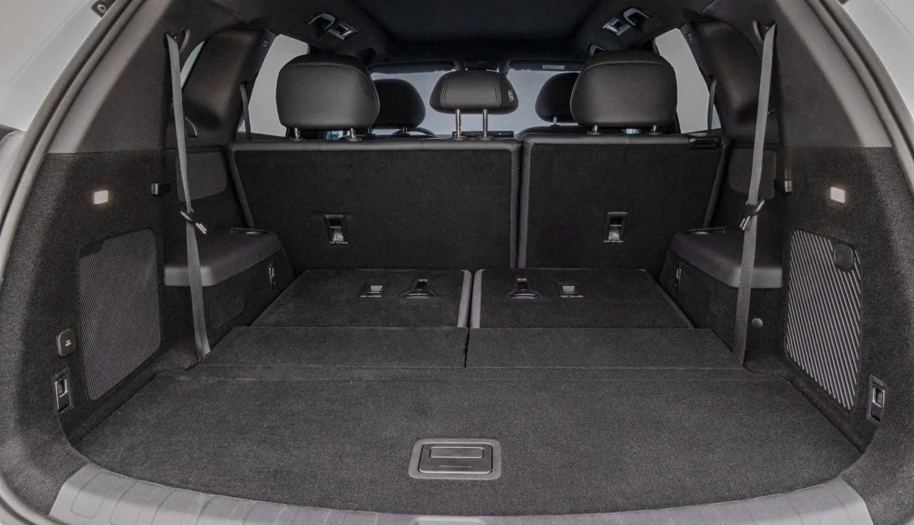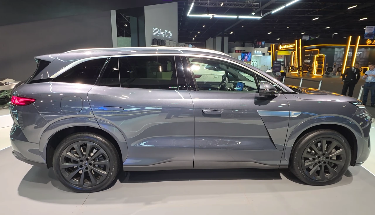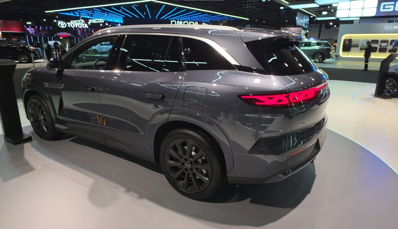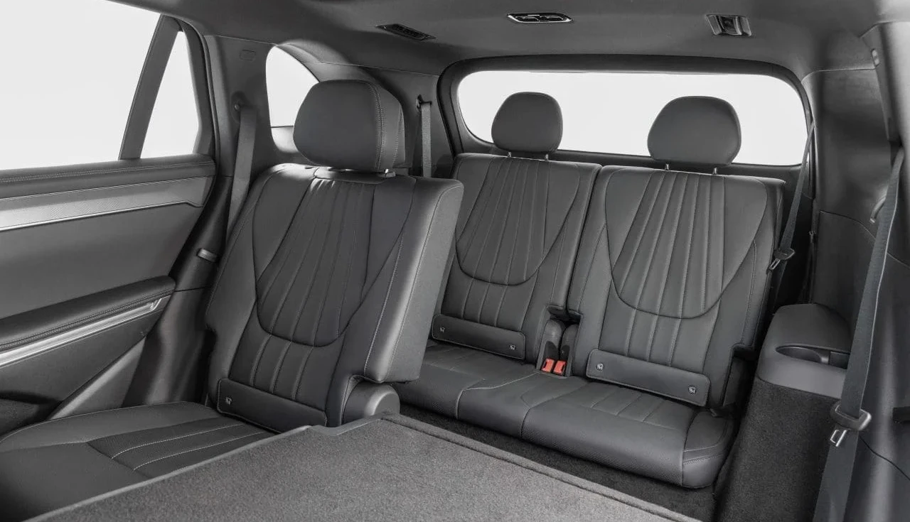 Com 5,04 metros de comprimento, o Atto 8 é grande mesmo. São 7 lugares reais distribuídos em três fileiras. O porta-malas varia bastante: 270 litros com todos os bancos ocupados, 960 litros usando só cinco lugares e até 1.960 litros rebatendo tudo.