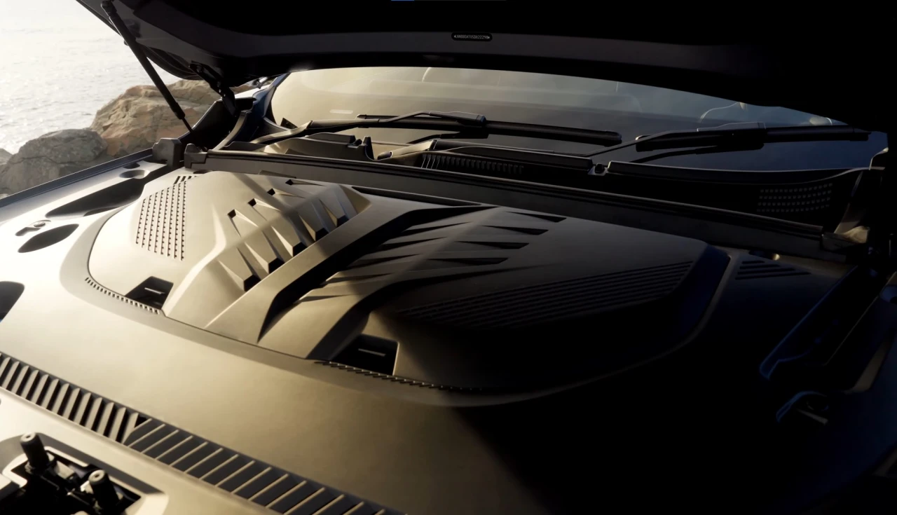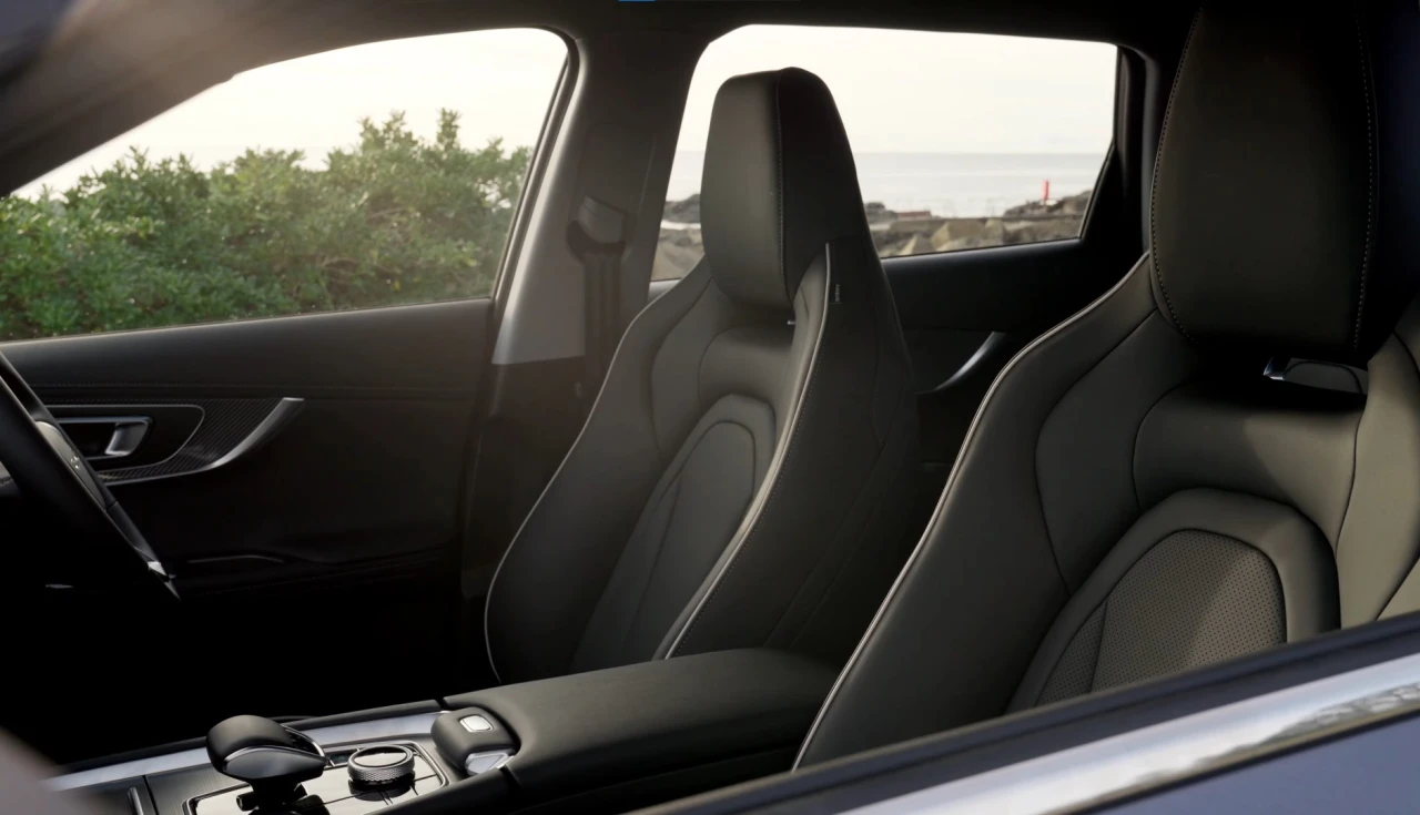Os detalhes incluem acabamentos que imitam aço escovado, alumínio e black piano estrategicamente posicionados. A iluminação ambiente em LED oferece sete cores diferentes que podem ser ajustadas conforme o modo de condução.