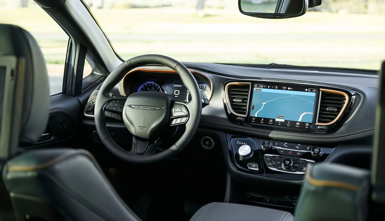 O Pacifica 2027 domina onde sempre dominou: espaço interno, versatilidade e conforto em longas viagens.