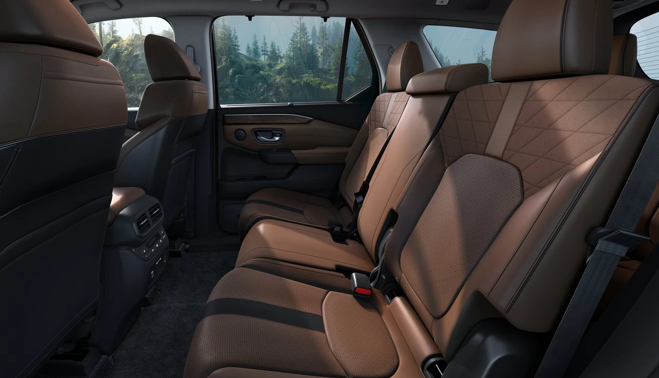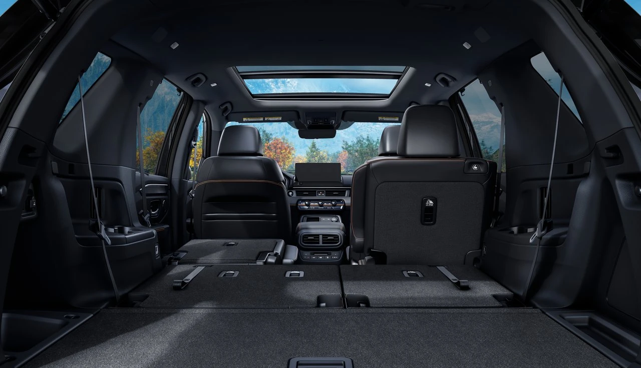 Como todo SUV de três fileiras que se preze, o Pilot acomoda até 8 pessoas. A segunda fileira tem 40,8 polegadas de espaço pras pernas – adultos sentam tranquilos. A terceira fileira é menor (32,5 polegadas), mas serve bem pra criançada ou viagens curtas.