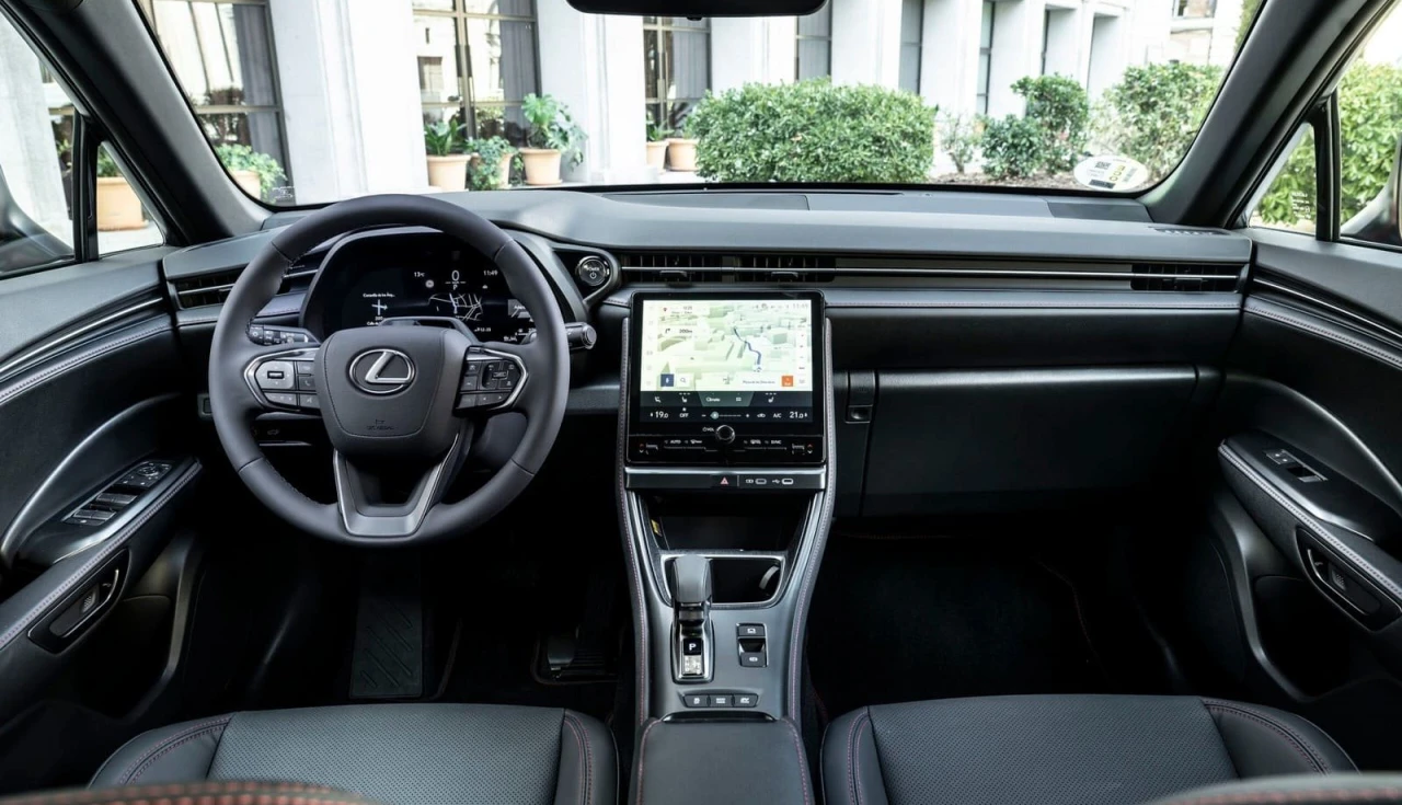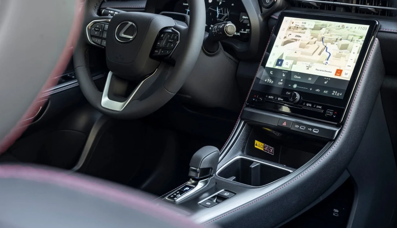 A tela digital de 12,3 polegadas é a primeira totalmente integrada em um Lexus, e funciona sem travamentos. O assistente de voz “Hey Lexus” entende contexto: diga “estou com calor” e ele ajusta a temperatura sozinho. Pelo aplicativo no celular, você controla tudo remotamente: temperatura, travas, localização do carro. Pode até compartilhar a chave digital com até 5 pessoas.