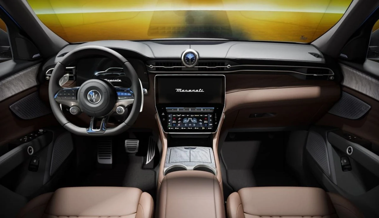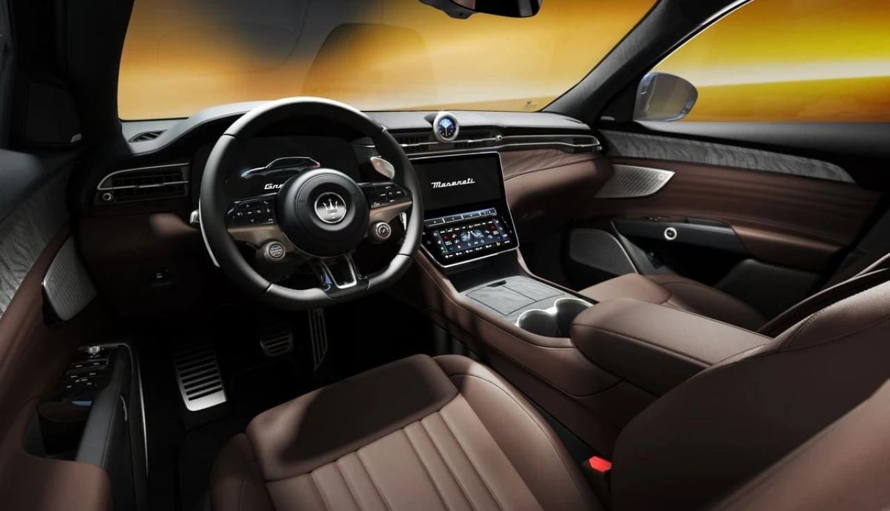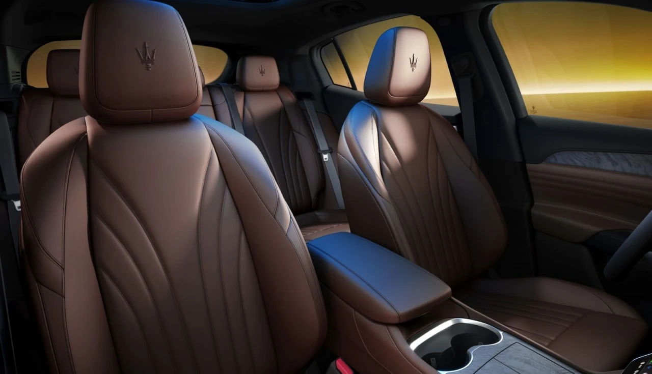 Aqui a Maserati mostra que sabe fazer carro de luxo há 110 anos. O interior vem com duas opções de couro premium: chocolate (tom quente) ou ghiaccio (mais neutro). Ambos com bancos que aquecem, esfriam e se ajustam em até 14 posições.
