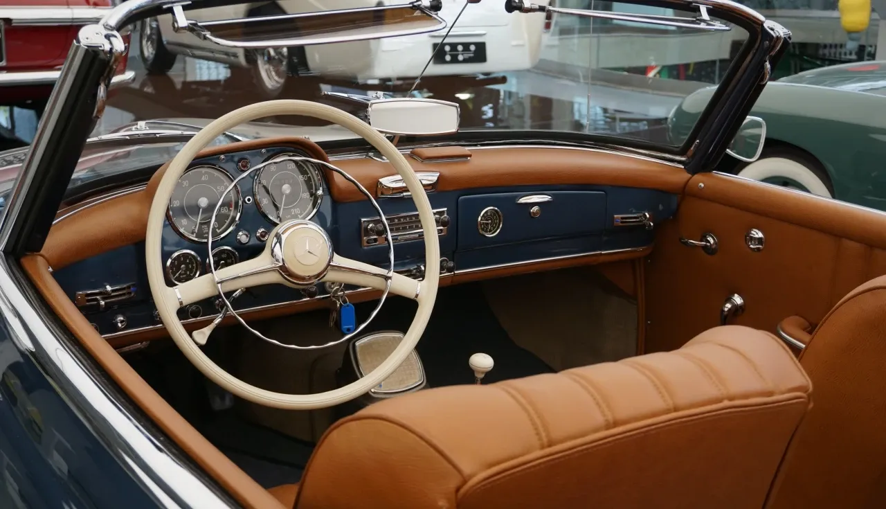 O modelo de 1956 exposto no Museu CARDE é um testemunho vivo dessa era dourada — um carro que sintetiza a sofisticação, a precisão e a estética que tornaram a Mercedes-Benz uma referência mundial.
