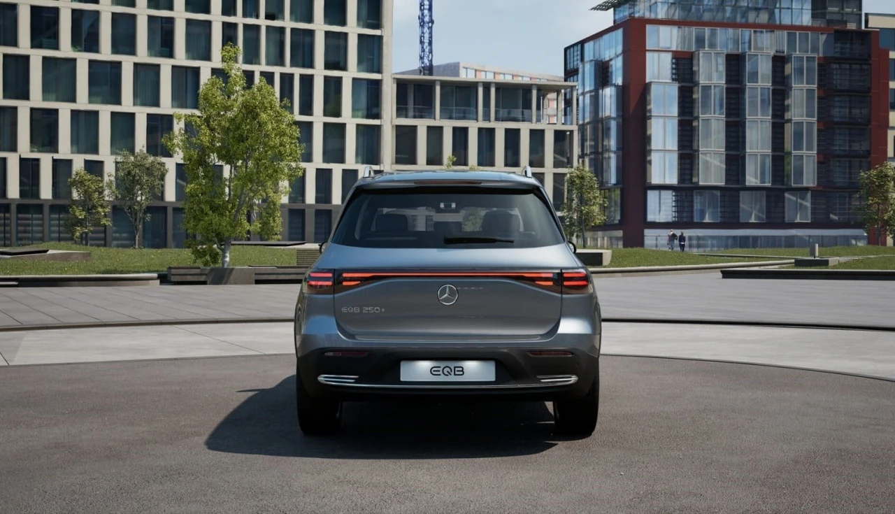 A traseira do EQB 250 mantém a elegância discreta característica da Mercedes-Benz, com lanternas LED que espelham o design dianteiro. O para-choque redesenhado apresenta linhas limpas e acabamento esportivo, enquanto os elementos cromados sutis agregam sofisticação sem exageros. A integração da porta de carregamento no para-lama traseiro foi executada de forma discreta, mantendo a harmonia visual.