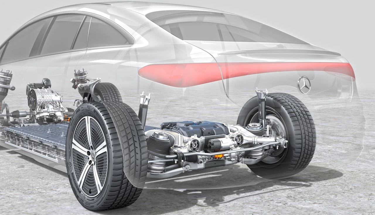 A bateria de 122 kWh (capacidade útil) entrega até 922 km no ciclo WLTP no EQS 450+, ou cerca de 785 km no ciclo EPA estimado. Uma transmissão de duas velocidades no eixo traseiro otimiza tanto as acelerações quanto a eficiência em rodovias. Em modelos 4MATIC, o motor dianteiro pode ser desacoplado em cruzeiro para reduzir perdas por atrito.