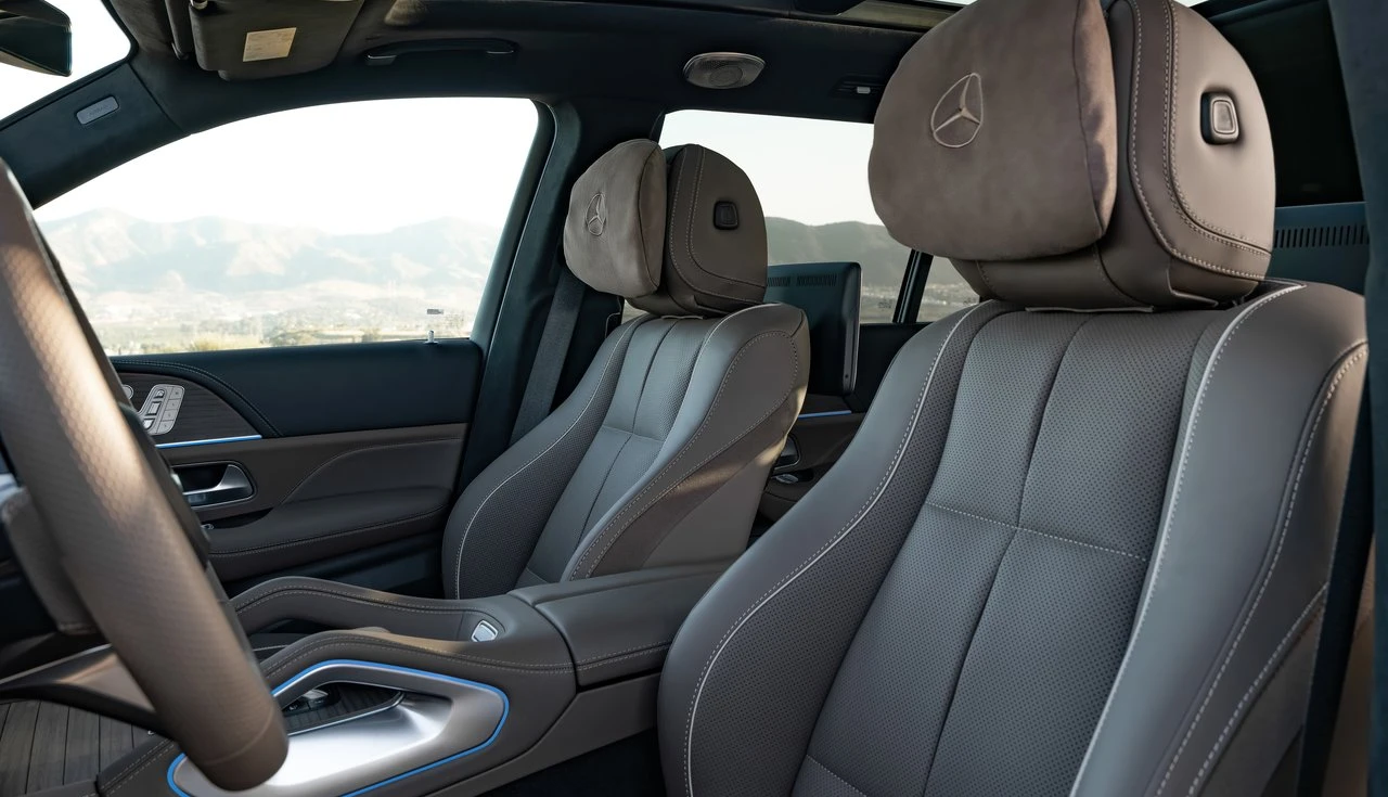 Uma novidade de peso: pela primeira vez, a linha GLS oferece a estrela montada no capô — a standing star com iluminação — recurso até então exclusivo do Classe S. Os faróis dianteiros e lanternas traseiras incorporam o motivo da estrela de três pontas nas luzes de LED.