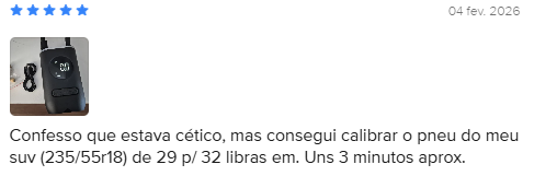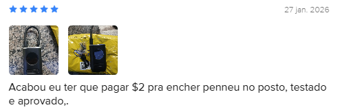 Com uma avaliação média de 4.8 de 5 estrelas no Mercado Livre e mais de 1700 opiniões, o Mini Compressor Digital Hold On é amplamente elogiado por sua praticidade, facilidade de uso, eficiência na calibragem e excelente custo-benefício. Usuários destacam a rapidez para calibrar pneus de carros e bicicletas, tornando-o um investimento essencial para emergências.