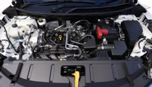 O consumo é o que realmente impressiona: 21,4 km/l no ciclo combinado (dados do México 2026), podendo superar 22 km/l em uso urbano graças à regeneração de frenagem. Com o tanque de 55 litros, a autonomia potencial chega perto de 1.200 km — quase o dobro do que a maioria dos concorrentes oferece.