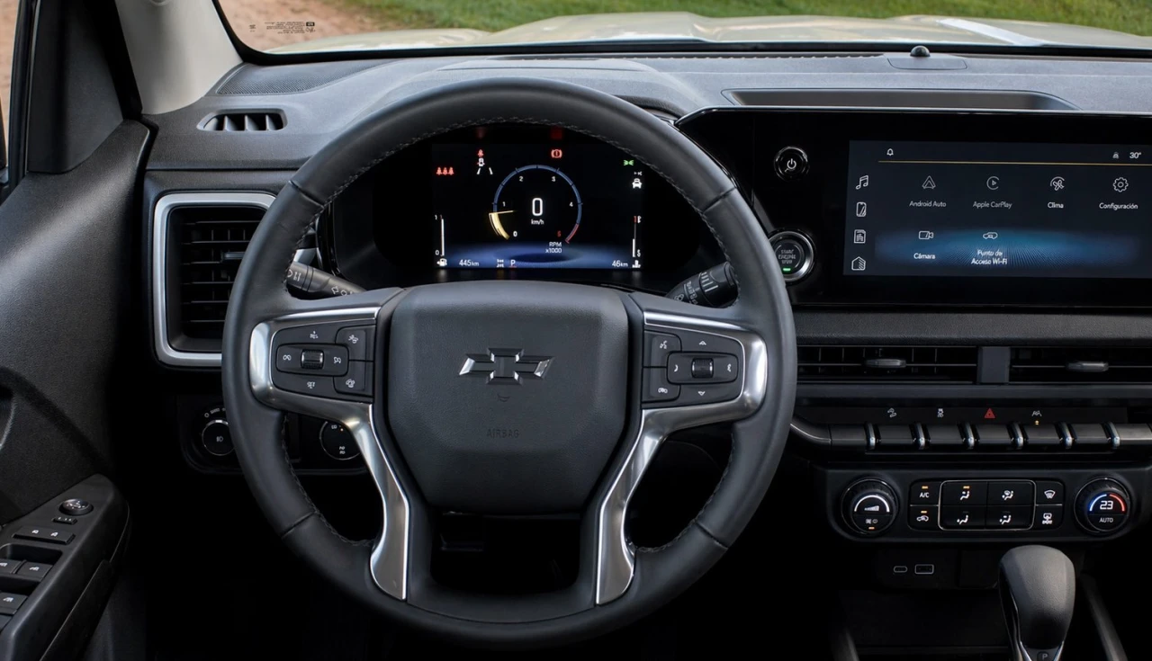Se por fora ela é rústica, por dentro a Chevrolet S10 Trail Boss respira tecnologia. O painel foi totalmente redesenhado, abandonando as linhas defasadas da geração anterior.