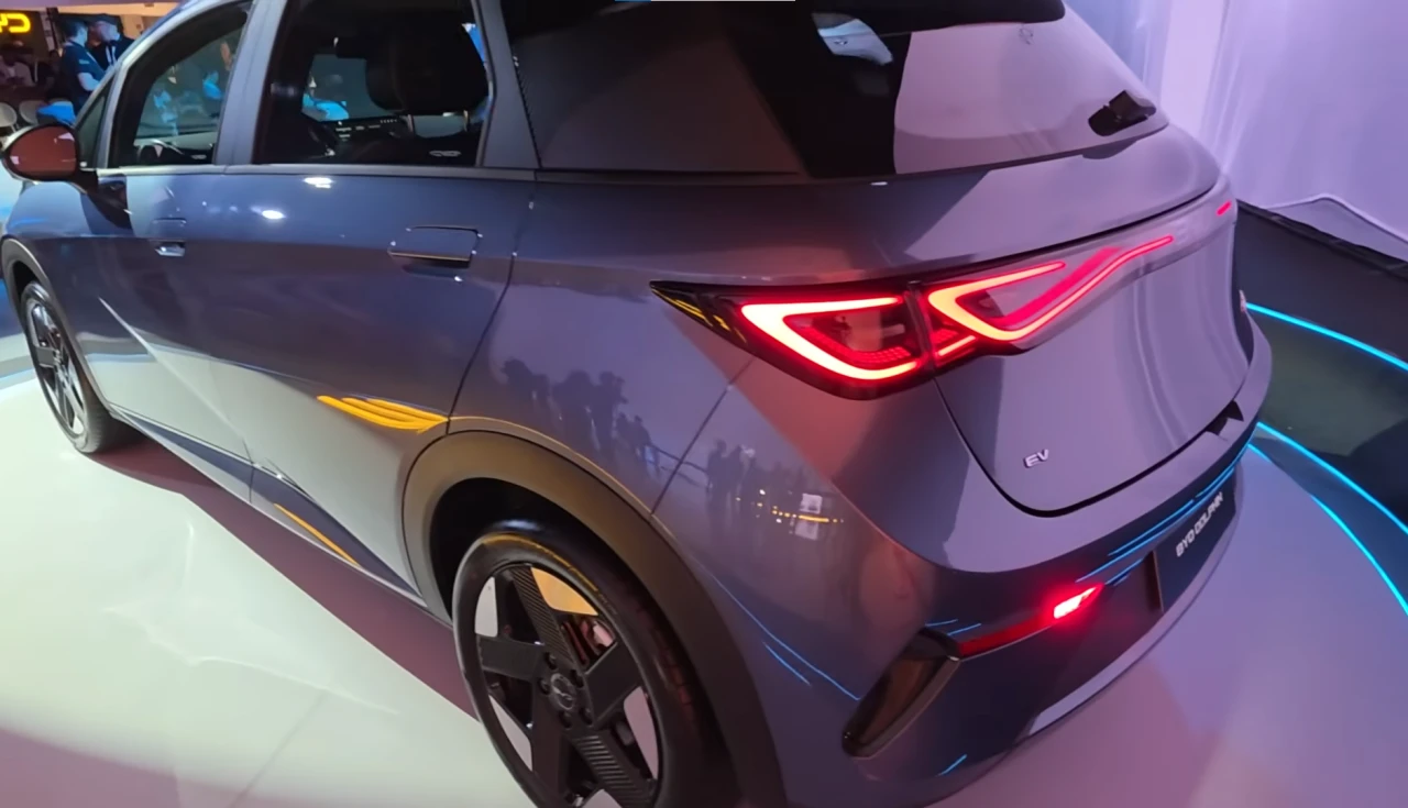 A primeira mudança notável está na dianteira. O conjunto óptico abandonou o formato estritamente quadrado para adotar linhas mais curvas e fluidas, alinhadas ao padrão de design da BYD na Europa. O para-choque foi redesenhado, tornando-se mais aerodinâmico e liso, o que resultou em um leve aumento no comprimento total do veículo: agora são 4,28 metros, cerca de 12,5 cm a mais que o modelo anterior.