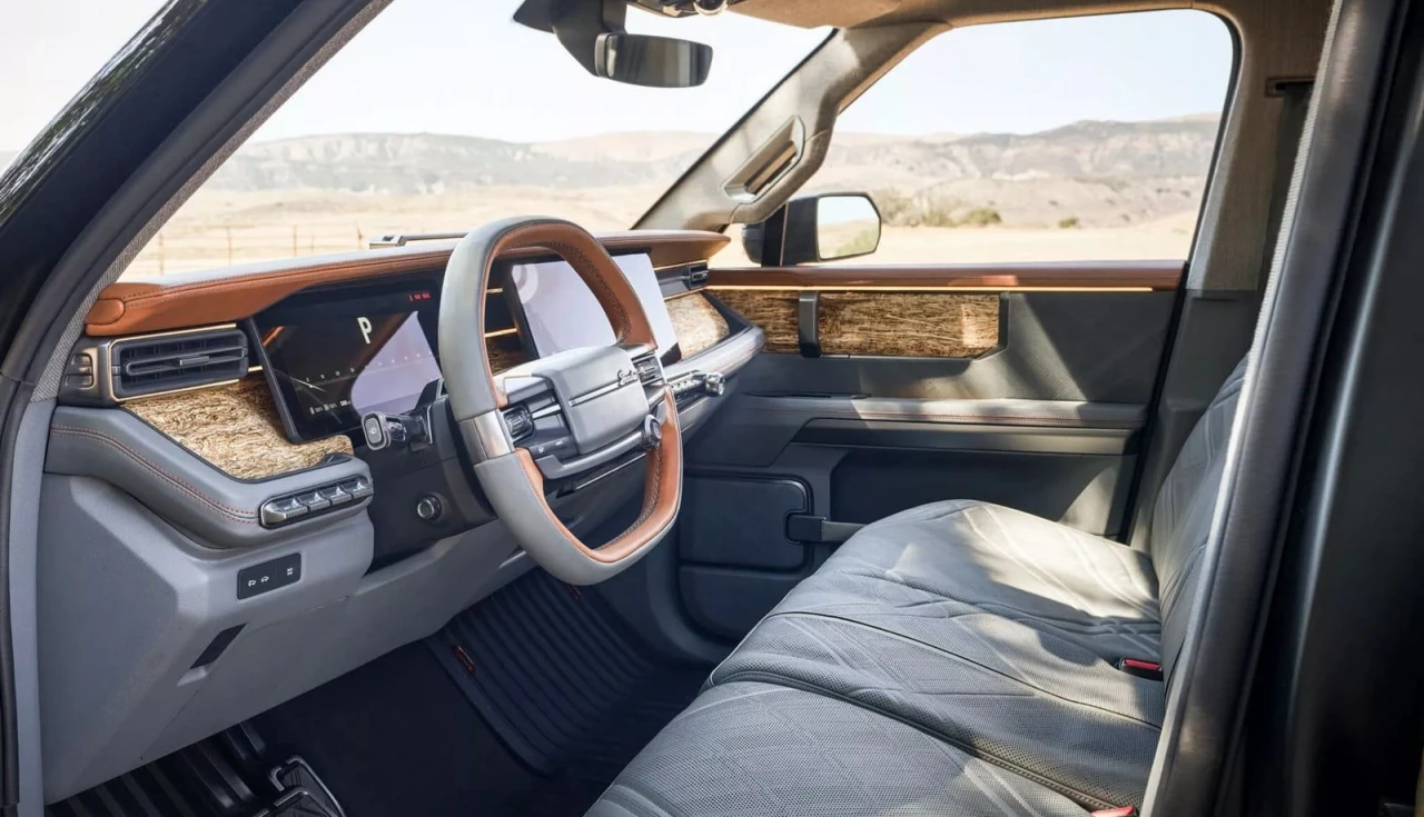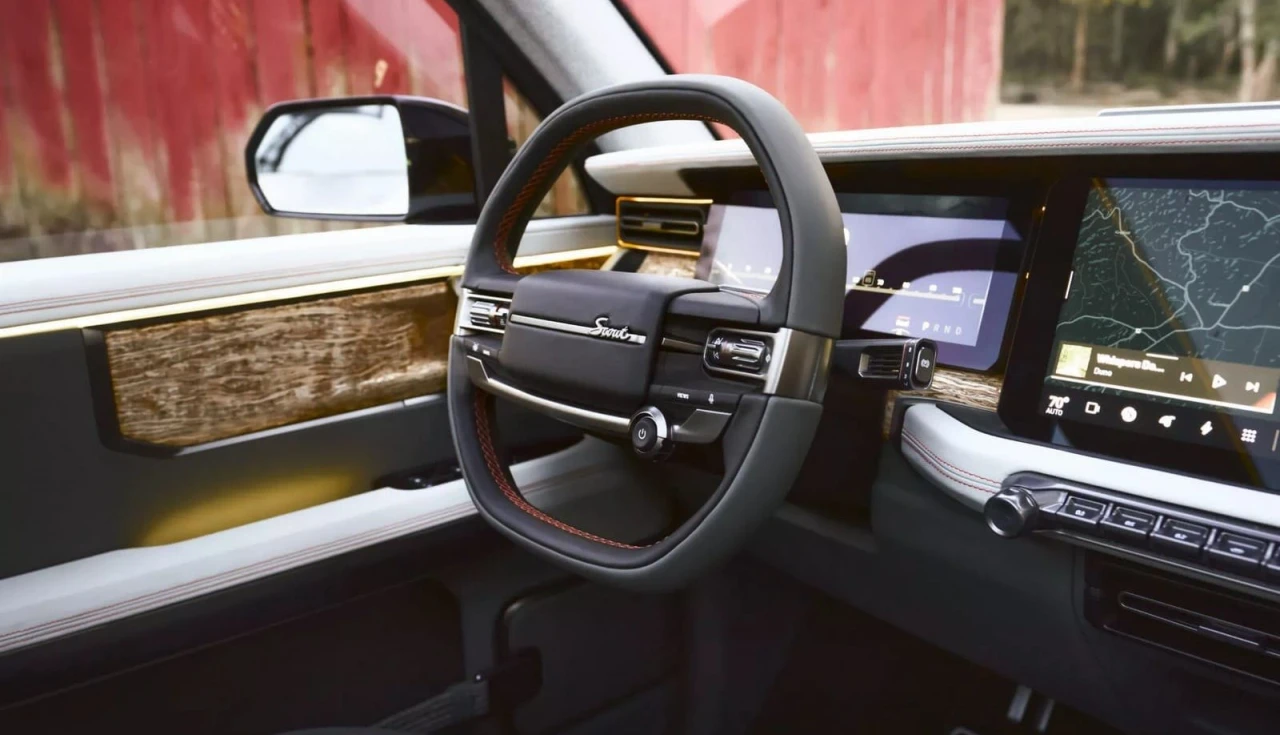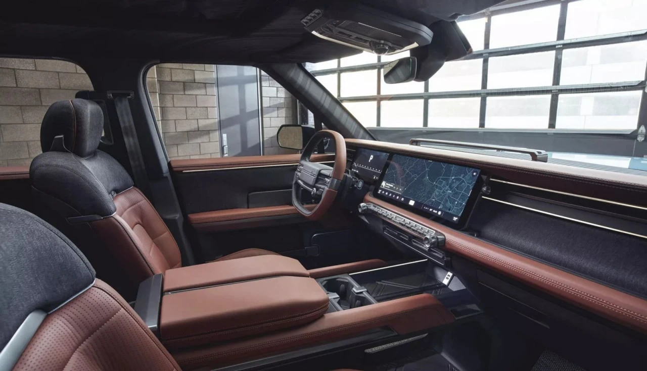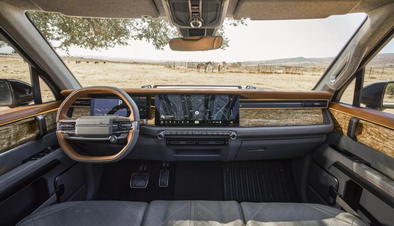 O interior não tenta impressionar com firulas. Tem dois telas grandes, sim, mas também tem botões físicos de verdade para controlar clima e modos off-road.