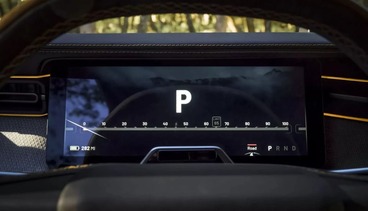 Mas a versão que todo mundo quer é a Harvester. É elétrica também, mas vem com um motor a gasolina que não move o carro. Ele só existe para recarregar a bateria enquanto você dirige.