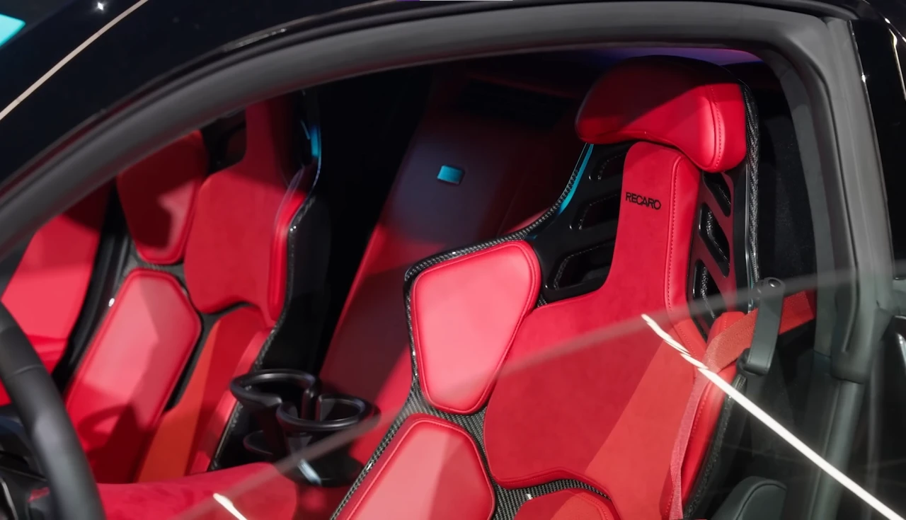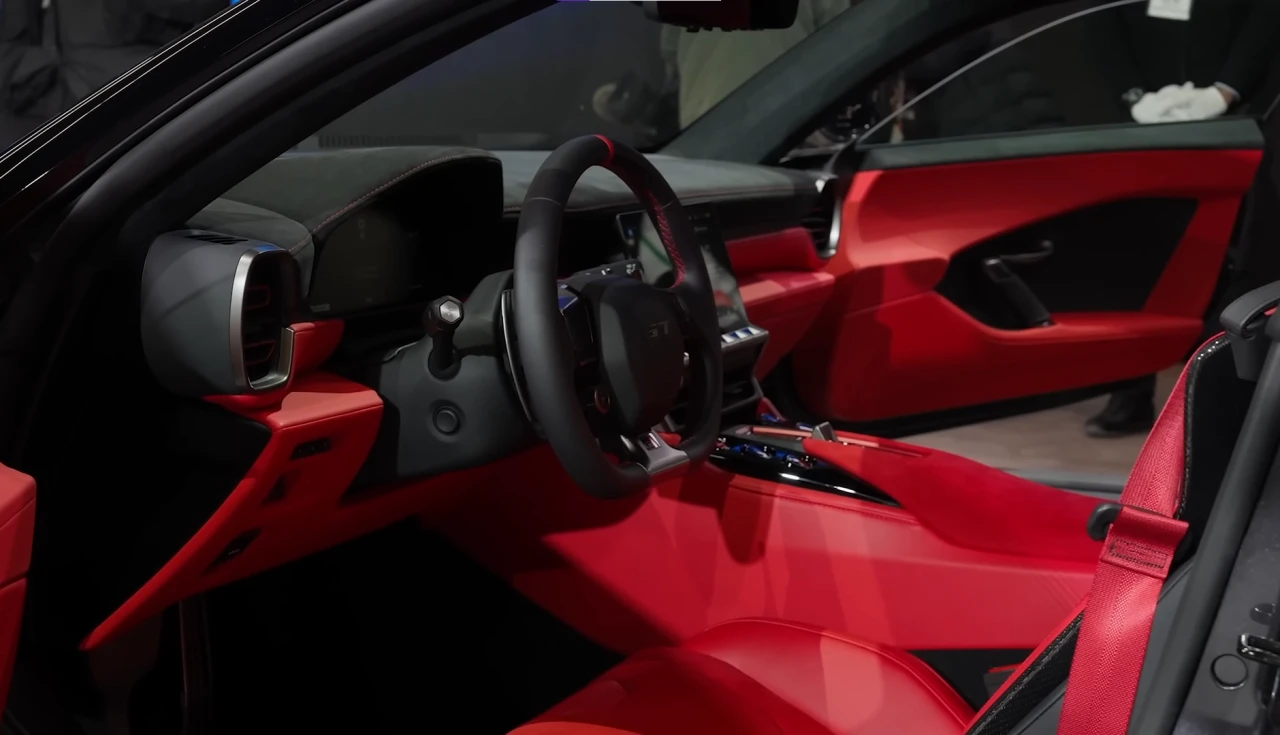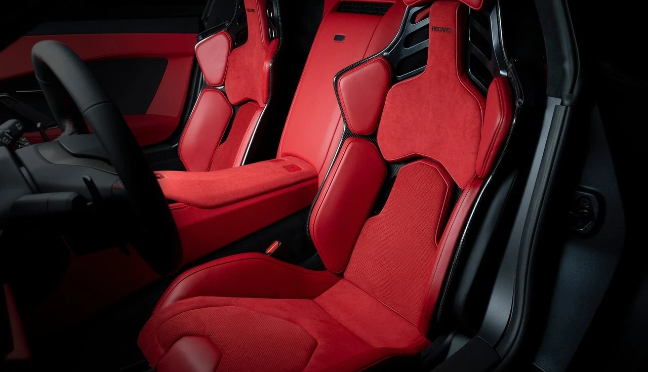 O interior do GR GT foi pensado para quem leva performance a sério. Os assentos em couro vermelho e Alcântara preta posicionam o motorista baixo e centralizado, exatamente como em carros de corrida GT3.