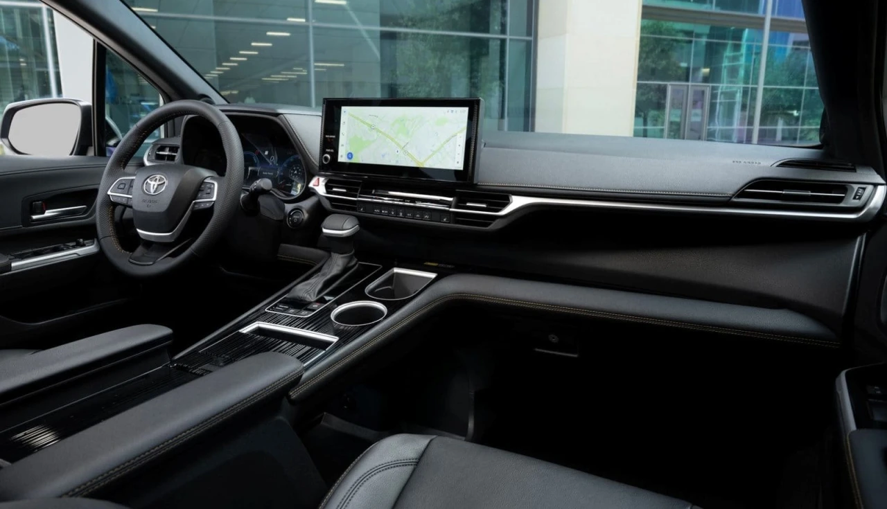 Mas a grande jogada da marca continua sendo o que há por baixo do capô. Enquanto praticamente todas as rivais ainda apostam em motores V6 convencionais, a Sienna mantém sua proposta 100% híbrida, agora com 245 cv de potência combinada.