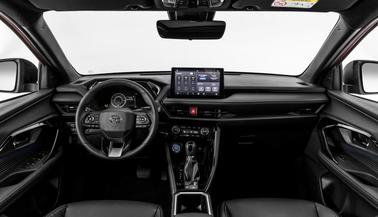 O vermelho Granada com opção de teto preto realmente chama atenção. A Toyota oferece outras cores também: branco polar, cinza granito, preto infinito, prata lua nova, azul netuno e branco lunar perolizado.