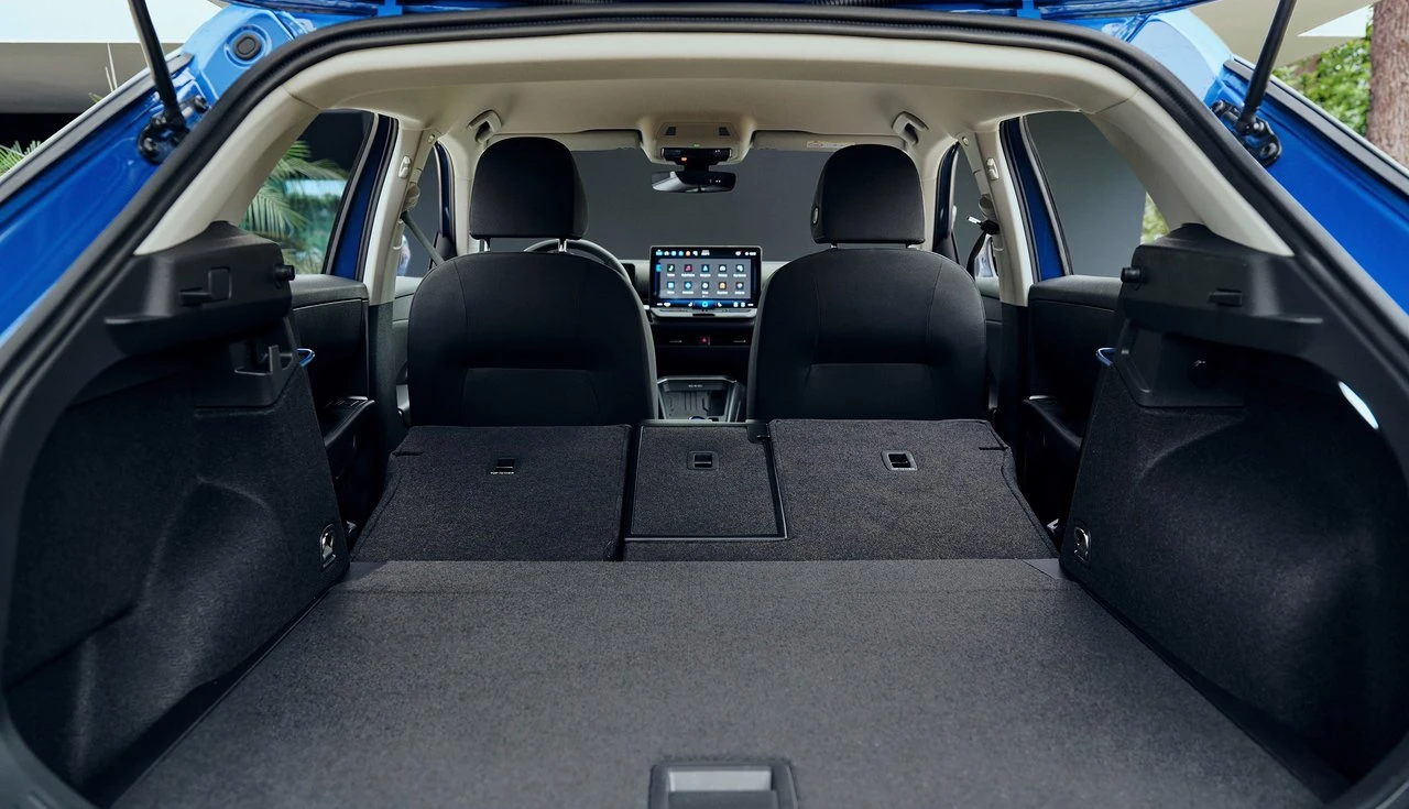 O espaço interno melhorou bastante, principalmente para quem vai atrás. O entre-eixos cresceu 39 mm, então as pernas agradecem. E tem mais: o coeficiente de arrasto caiu para 0,29, uma redução de 10% que faz diferença no consumo e no ruído interno.